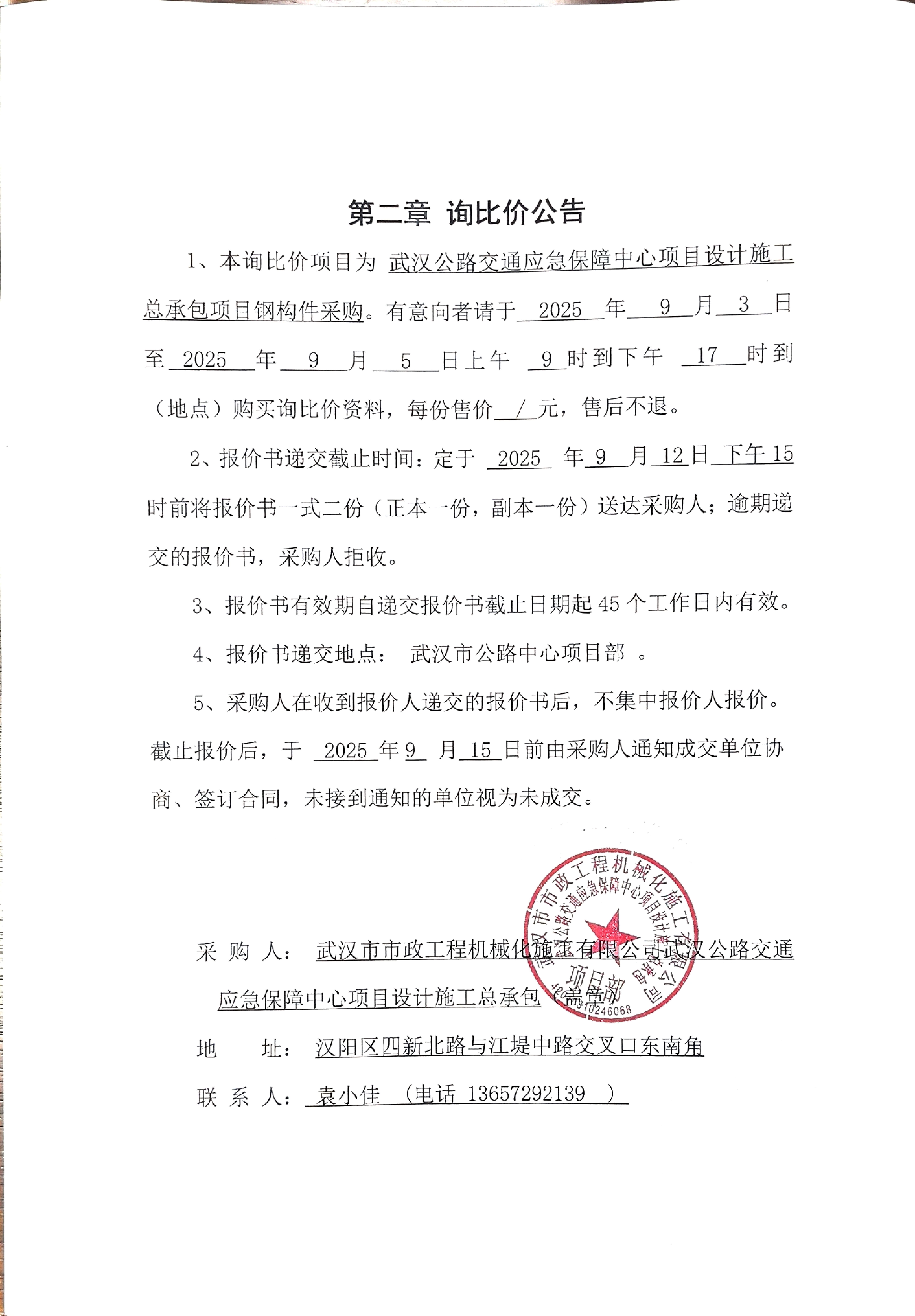 武漢公路交通應(yīng)急保障中心項(xiàng)目設(shè)計(jì)施工總承包項(xiàng)目鋼構(gòu)件采購(gòu)詢價(jià)公告