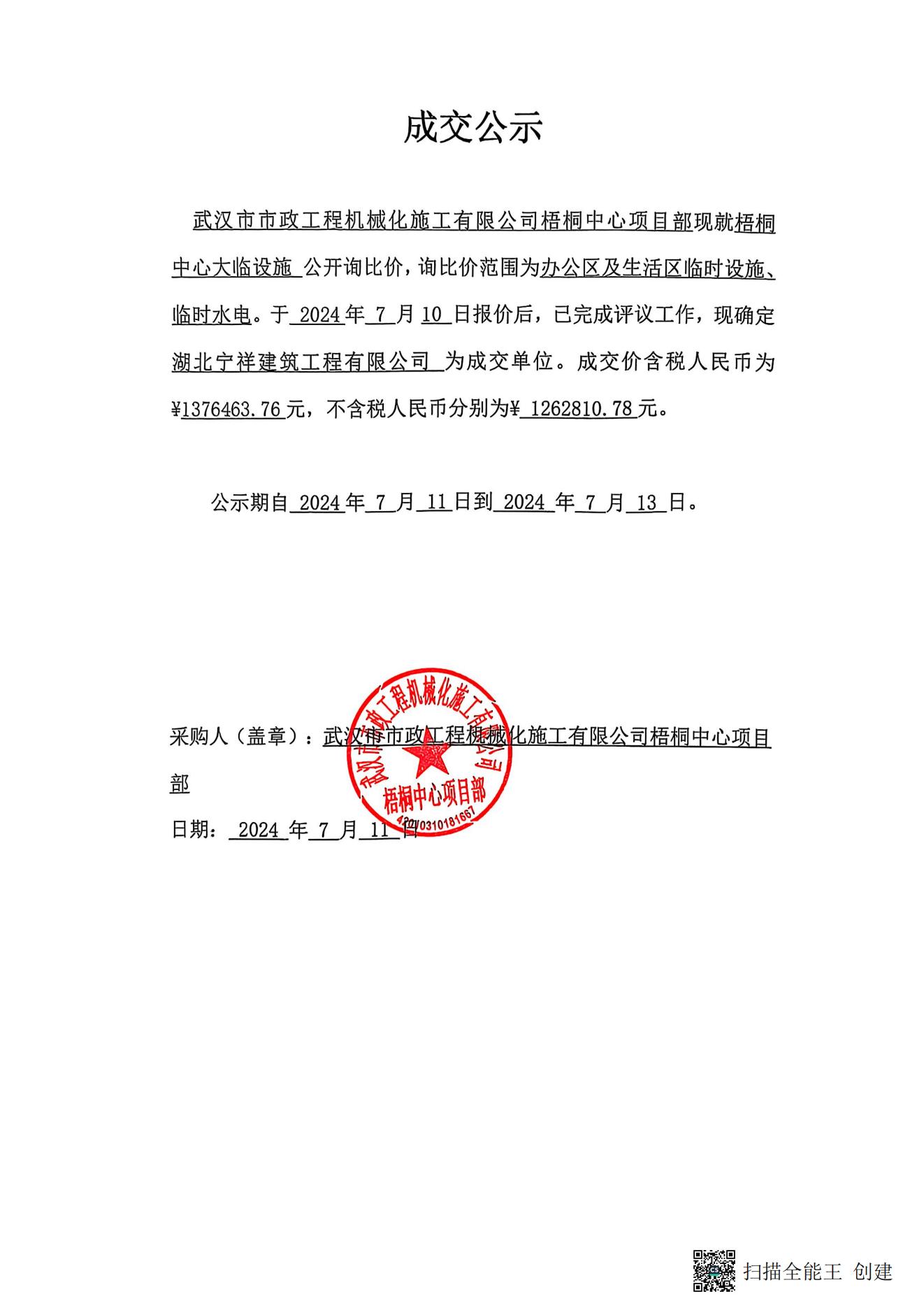 梧桐中心大臨設(shè)施成交公示
