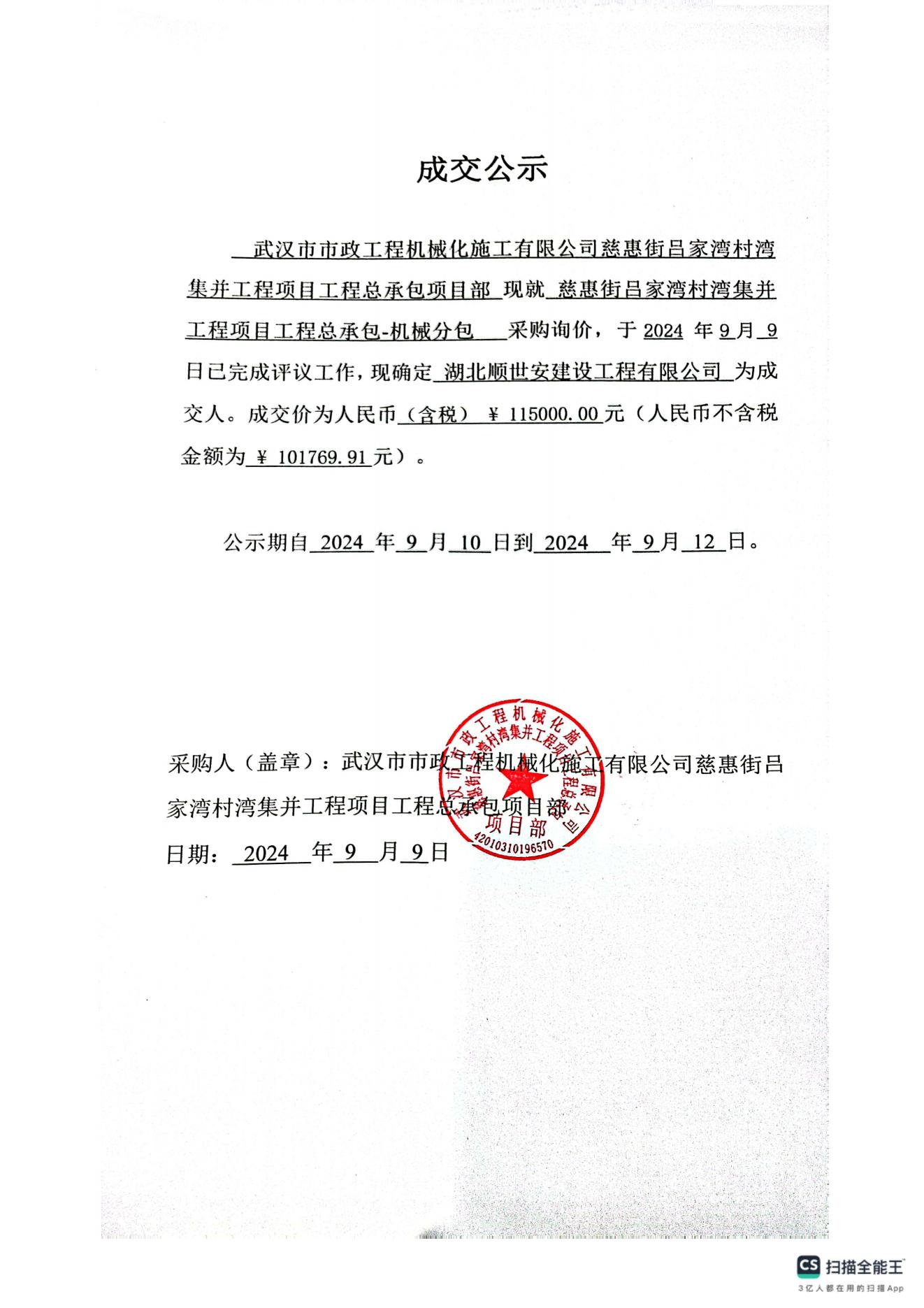 慈惠街呂家灣村灣集并工程項(xiàng)目工程總承包-機(jī)械分包成交公示